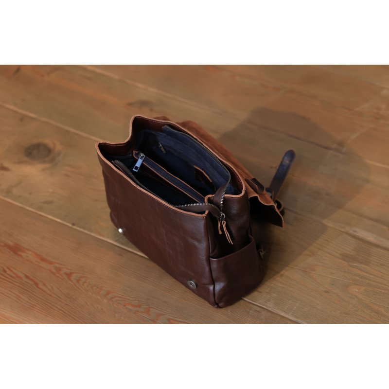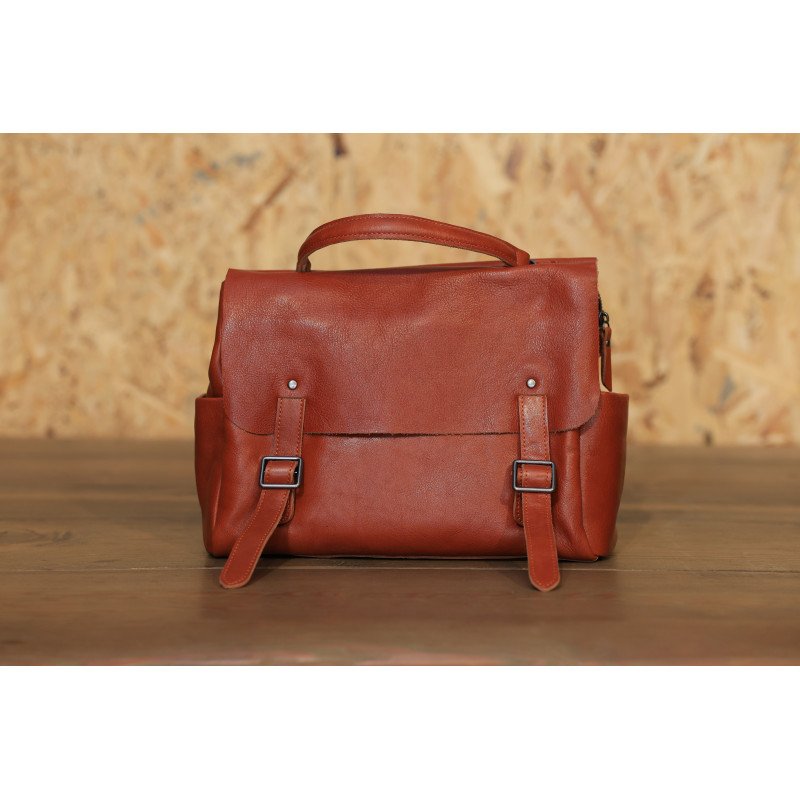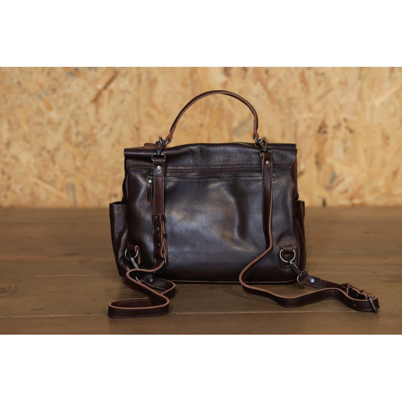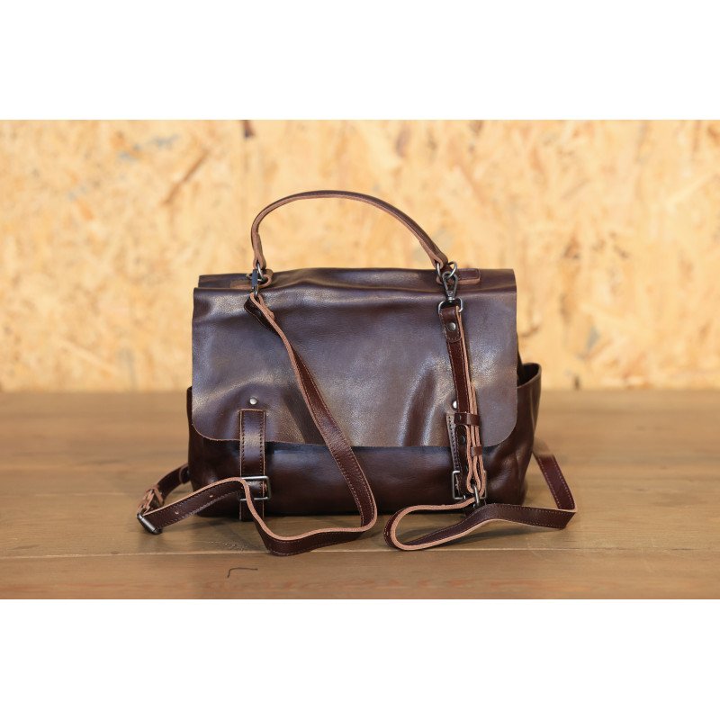 It has a strap that can change the bag into a backpack and a shoulder bag.