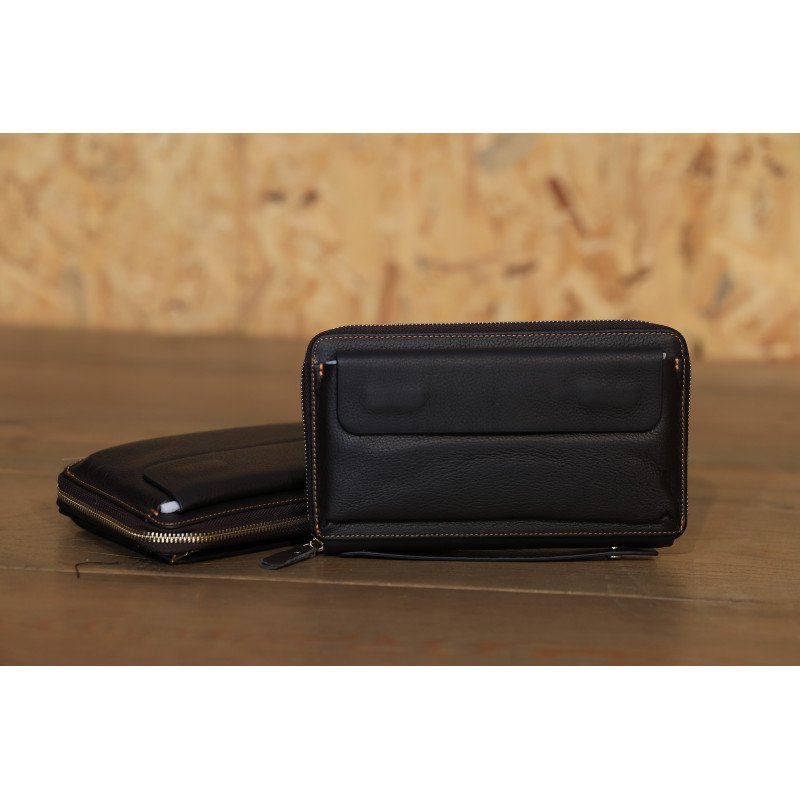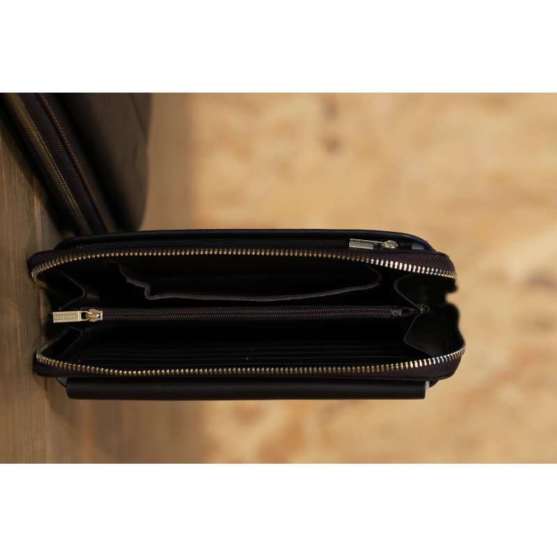 A sleek and practical leather pouch designed for modern men. Featuring a full zipper closure, multiple compartments, and a structured finish, it’s ideal for carrying essentials like phone, wallet, cards, and documents in style.