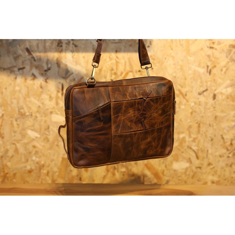 Crafted from rich, full-grain leather, this versatile piece is both a protective laptop sleeve and a stylish cross-shoulder bag. Designed with multiple front pockets for quick access and a slim silhouette that fits seamlessly into professional or casual settings, it balances elegance with everyday practicality. The detachable strap allows you to carry it as a sleek sleeve or wear it comfortably as a bag — making it the ideal companion for work, travel, or daily city life.